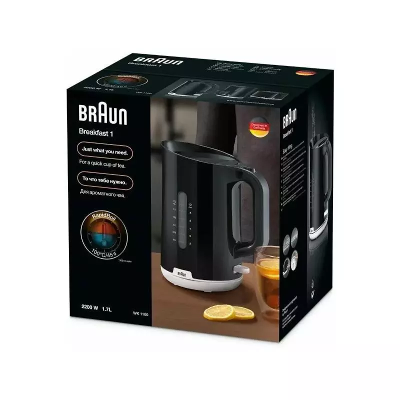 Ấm đun nước Braun WK1100BK tốc độ nhanh, thiết kế sang trọng, an toàn.