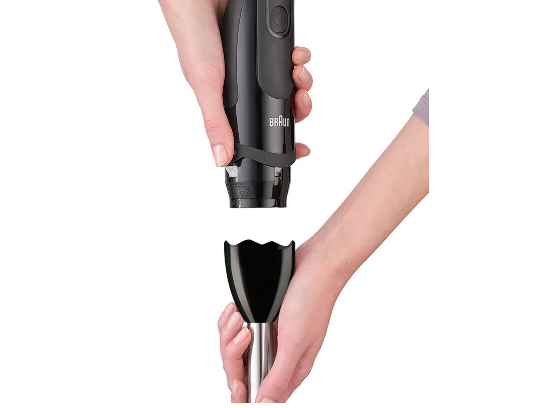 Braun MQ5235BKcó thiết kế hiện đại với thân máy thon gọn giúp cầm nắm dễ dàng và thao tác thoải mái. Phần thân được bọc nhựa cao cấp, tạo cảm giác chắc tay và chống trơn trượt khi sử dụng. Các nút điều chỉnh được bố trí hợp lý, giúp người dùng dễ dàng kiểm soát tốc độ và công suất theo nhu cầu.