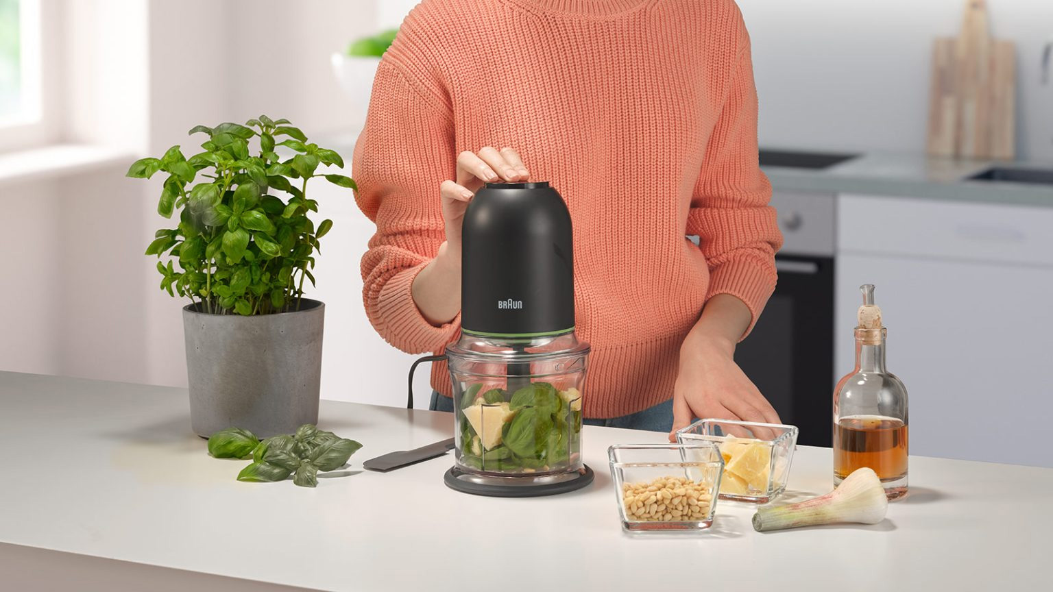 Máy xay thịt Braun CH3011BKsở hữu thiết kế nhỏ gọn, dung tích cối xay 0.5 lít giúp tiết kiệm không gian bếp mà vẫn đáp ứng nhu cầu sử dụng đa dạng. Với trọng lượng chỉ khoảng 1.2 kg, máy dễ dàng di chuyển và cất gọn khi không dùng đến.