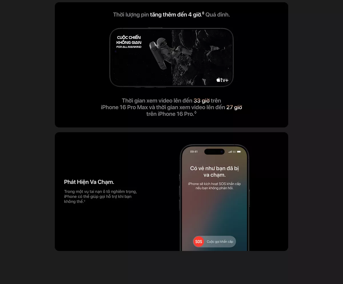 Apple trang bị cho iPhone 16 Pro Max viên pin bền bỉ nhất từ trước đến nay, kết hợp công nghệ tối ưu hóa hiệu suất để mang lại thời gian sử dụng ấn tượng. Máy hỗ trợ cổng USB-C tốc độ cao, giúp truyền dữ liệu nhanh chóng, đặc biệt hữu ích khi xử lý các tệp video dung lượng lớn. Khả năng chống nước và bụi chuẩn IP68 đảm bảo độ bền trong nhiều môi trường khác nhau.
