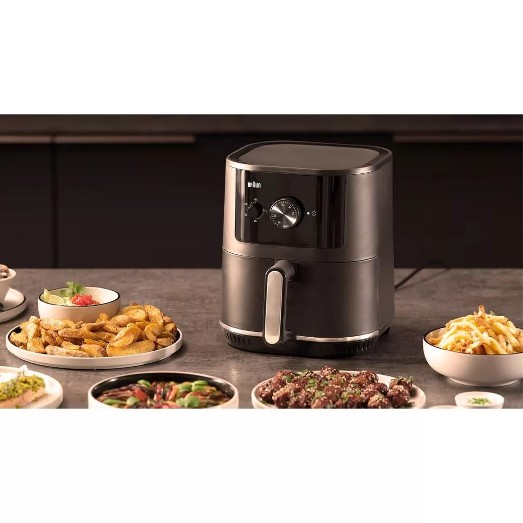 Với công suất lớn, Braun HF3000 cho khả năng chiên nướng nhanh chóng, thực phẩm chín đều và tiết kiệm thời gian. Dung tích rộng phù hợp cho gia đình từ 3 – 5 người, đáp ứng đa dạng nhu cầu chế biến từ khoai tây chiên, gà nướng đến bánh mì nướng.