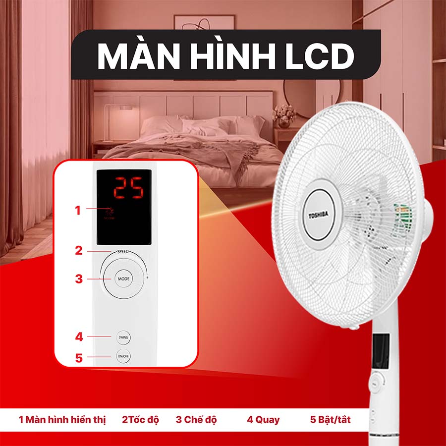 Điểm nổi bật của Toshiba F-LSD30(W)VN là hệ thống 9 cánh quạt với đường kính 40 cm, cho luồng gió mạnh mẽ và tỏa đều khắp không gian. Kết hợp cùng 26 tốc độ gió và 4 chế độ gió khác nhau bao gồm gió thường, gió tự nhiên, gió ngủ và gió yên tĩnh, quạt đáp ứng đa dạng nhu cầu làm mát từ sinh hoạt hàng ngày đến giấc ngủ sâu. Đặc biệt, độ ồn chỉ khoảng 27 dB ở chế độ yên tĩnh, mang đến sự thoải mái và không gây ảnh hưởng đến giấc ngủ.