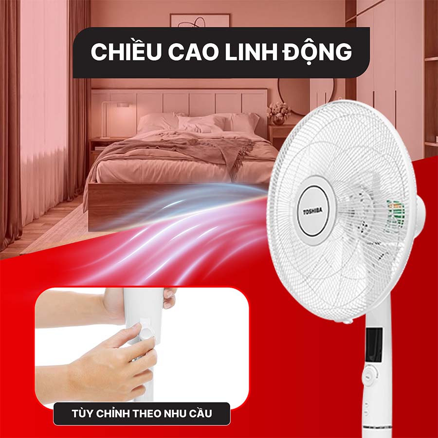 Quạt cây Toshiba F-LSD30(W)VN còn hỗ trợ nhiều tính năng thông minh như điều khiển từ xa tiện lợi, hẹn giờ tắt mở lên đến 12 giờ, cùng cảm biến nhiệt độ giúp điều chỉnh luồng gió phù hợp với môi trường xung quanh. Người dùng có thể dễ dàng thay đổi chiều cao quạt từ 121,5 cm đến 137 cm để phù hợp với không gian và nhu cầu sử dụng.
