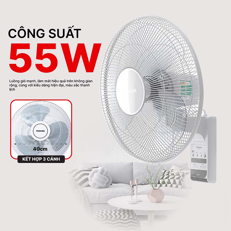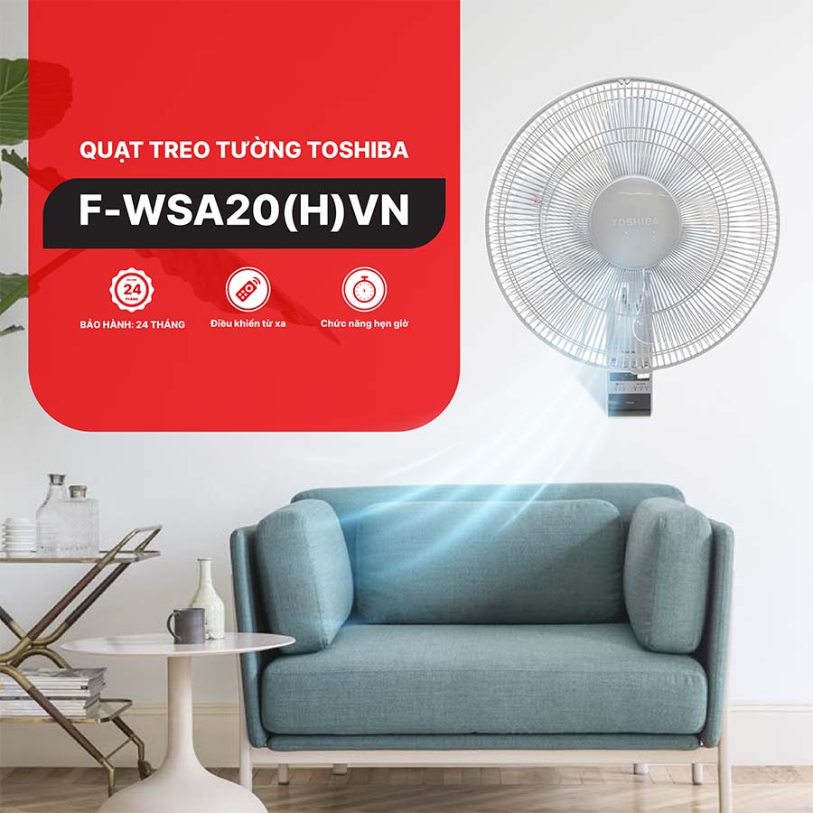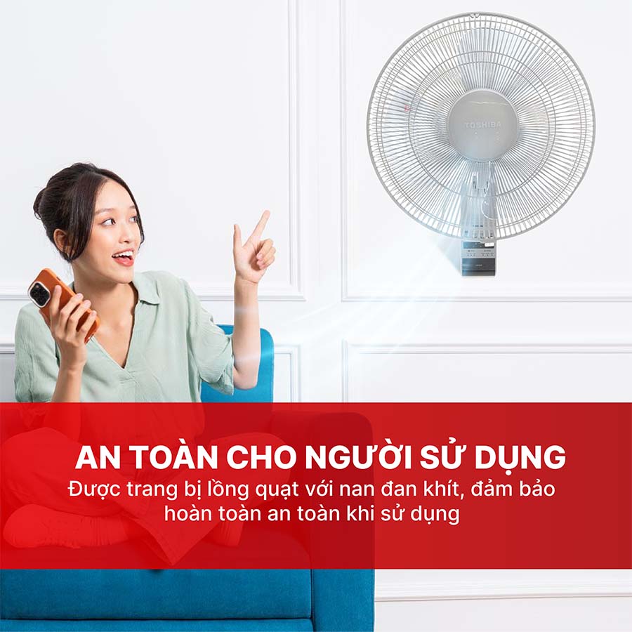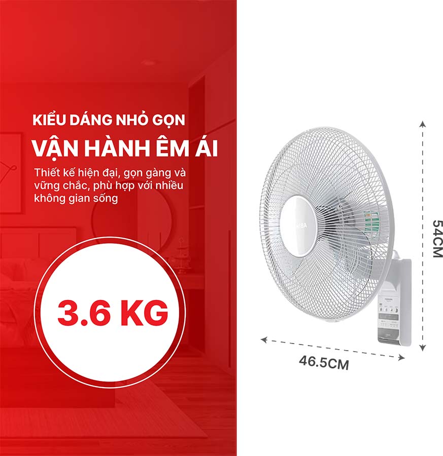 Vận hành êm ái, bền bỉ Với kích thước khoảng 46,5 × 54 × 35 cm và trọng lượng 3,6 kg, quạt treo tường Toshiba F-WSA20(H)VN có cấu tạo chắc chắn, dễ dàng lắp đặt và vận hành êm ái, bền bỉ theo thời gian, đem lại sự an tâm cho người sử dụng.